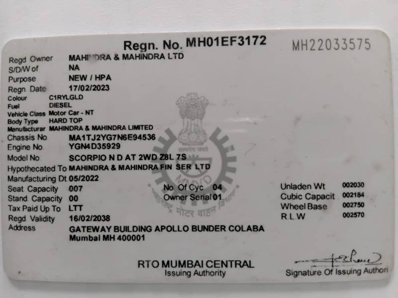 Mahindra Scorpio-N Z8 L Diesel AT 2WD 7 STR